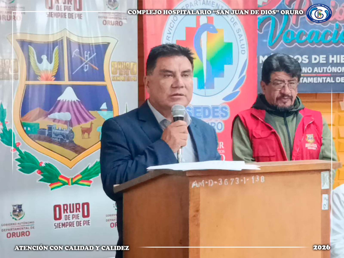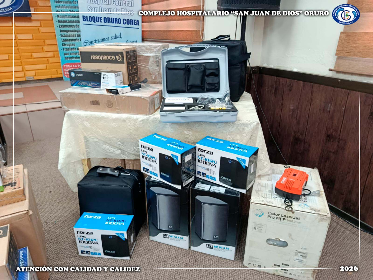 Por gestiones de la primera autoridad del departamento el Dr. Johnny Franklin Vedia Rodríguez quien siempre va pensando en la Salud de la población, el director del Complejo Hospitalario «San Juan de Dios Oruro» el Dr. Raúl Edmundo Guibarra Torrez recibió por parte del Ministerio de Salud EQUIPOS AUDIOLÓGICOS para la institución las cuales después de una constante capacitación se pondrán en funcionamiento.